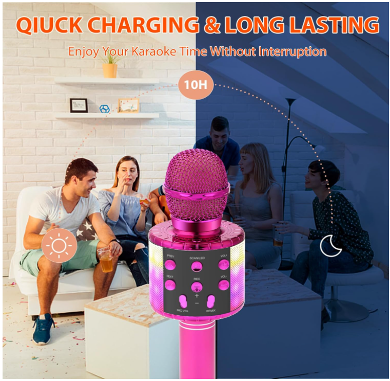 Noul microfon karaoke lansat poate fi utilizat pe scară largă pentru petreceri, KTV acasă, karaoke de familie, cântări de călătorie, înregistrări instrumentale, interviuri, discurs și cadouri pentru copil sau prieten și așa mai departe.