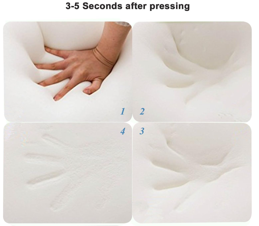 Sigură și sănătoasă: această pernă este în mod natural diferită de o pernă tradițională, care poate oferi o barieră de protecție. Dacă simți un miros de „spumă proaspătă”, nu este dăunător. Mirosul ar trebui să dispară câteva zile mai târziu după despachetarea și aerisirea pernei