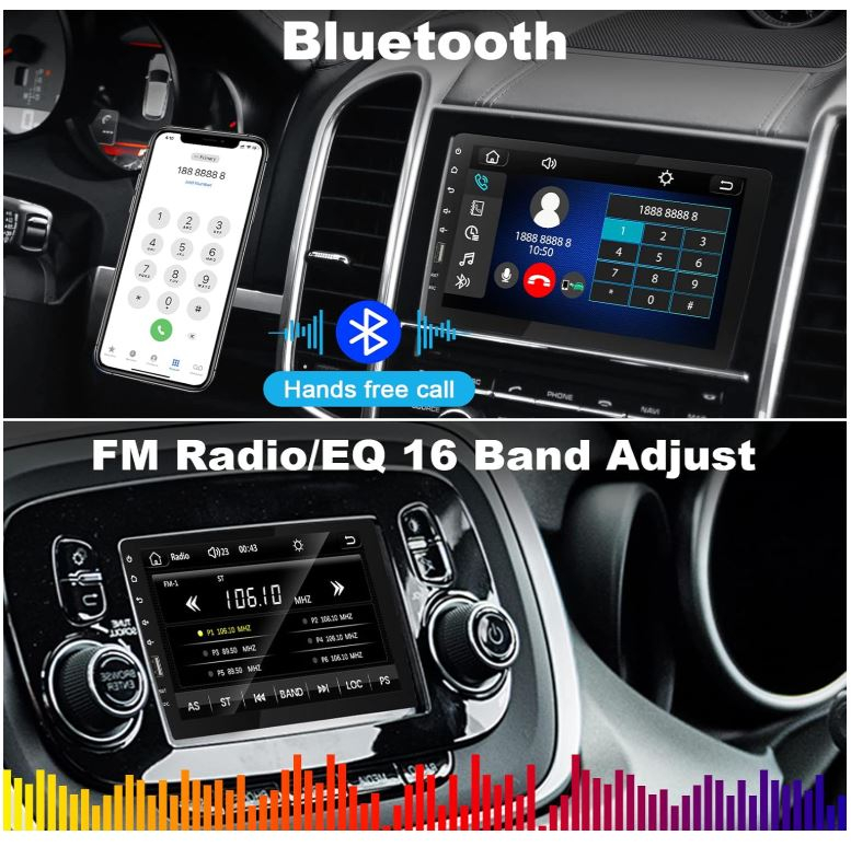 Acest radio auto cu ecran tactil are sistem Bluetooth încorporat, acceptă apeluri Bluetooth hands-free, redare muzică, încărcare automată a agendei telefonice. Microfonul încorporat vă ajută să colectați sunet pentru un sunet clar în timpul apelurilor.