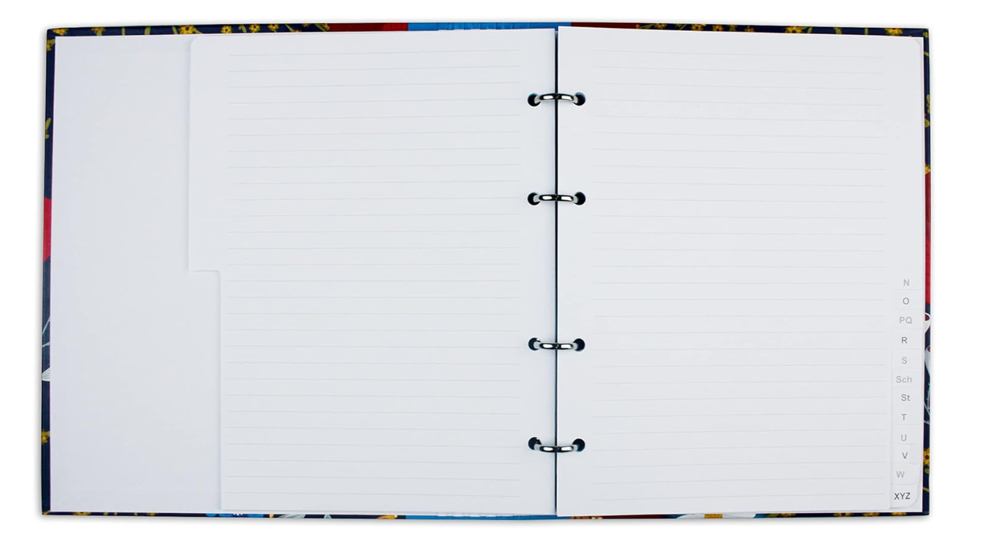 Format: 200 x 230 mm (legator cu inele), 165 x 220 mm (filă)
