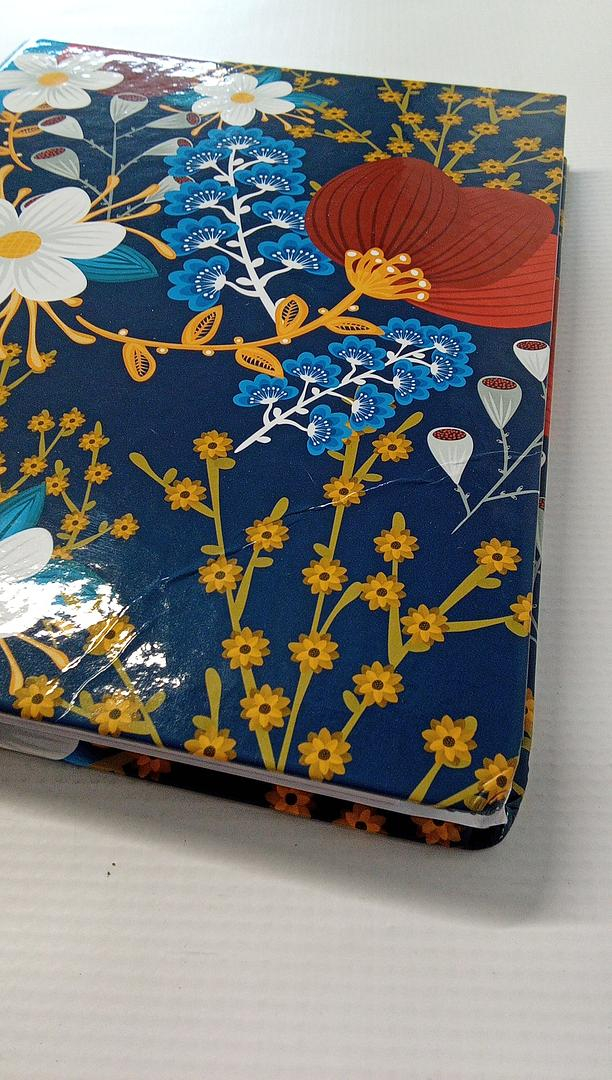 Prezinta o zgarietura fina pe coperta din fara, iar pe spate coperta este putin indoita.
