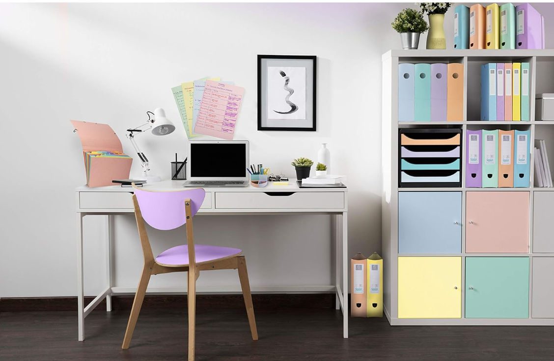 Nou pentru a vă organiza dosarul, acest organizator de documente pastel multicolor combină utilul și plăcutul.