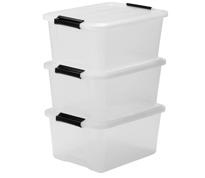 Set 3 cutii de depozitare din plastic cu capac de 15L fiecare, cu capac si cleme pe laterale. Acest produs este livrat în ambalaj standard.