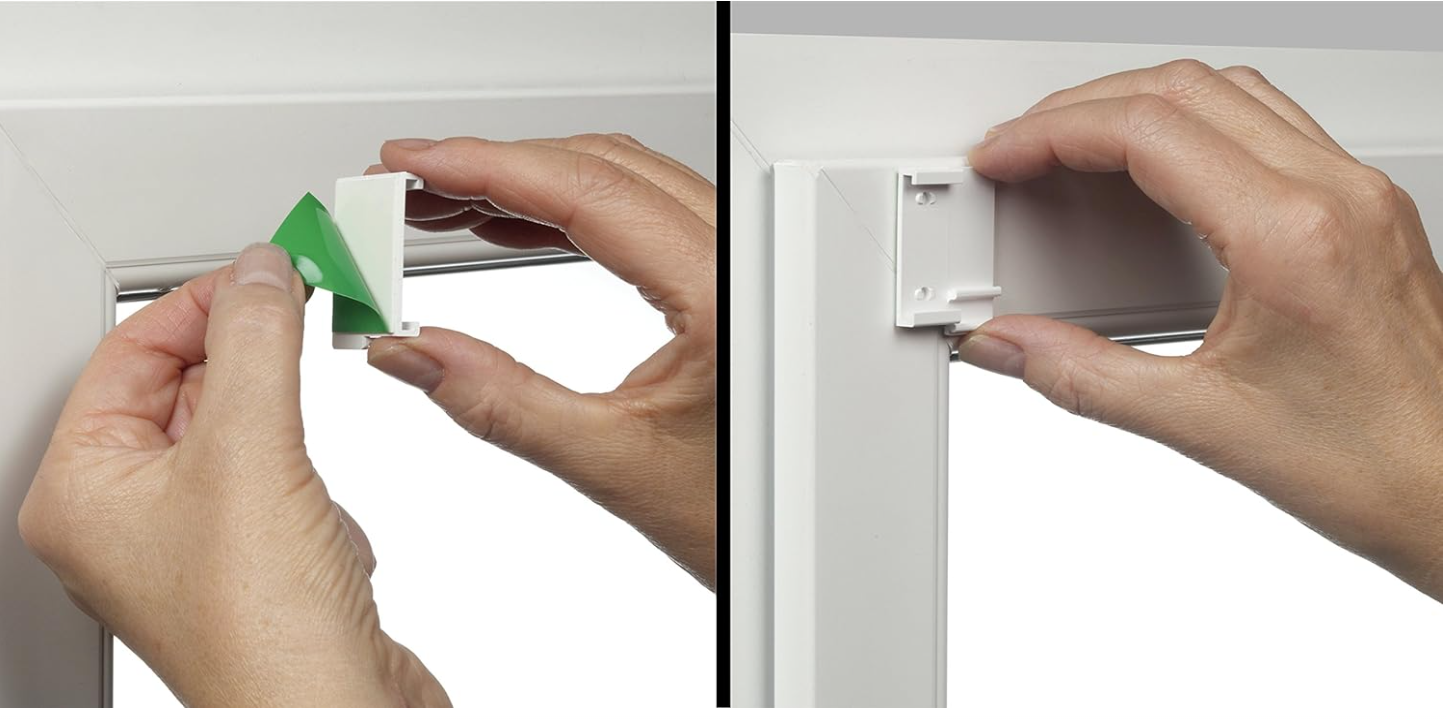 Fixare cu tampoane adezive: lipiți de panoul ferestrei curățat, aderență completă după cca. 24 de ore, potrivit și pentru toate ferestrele care nu se deschid, îndepărtare fără reziduuri