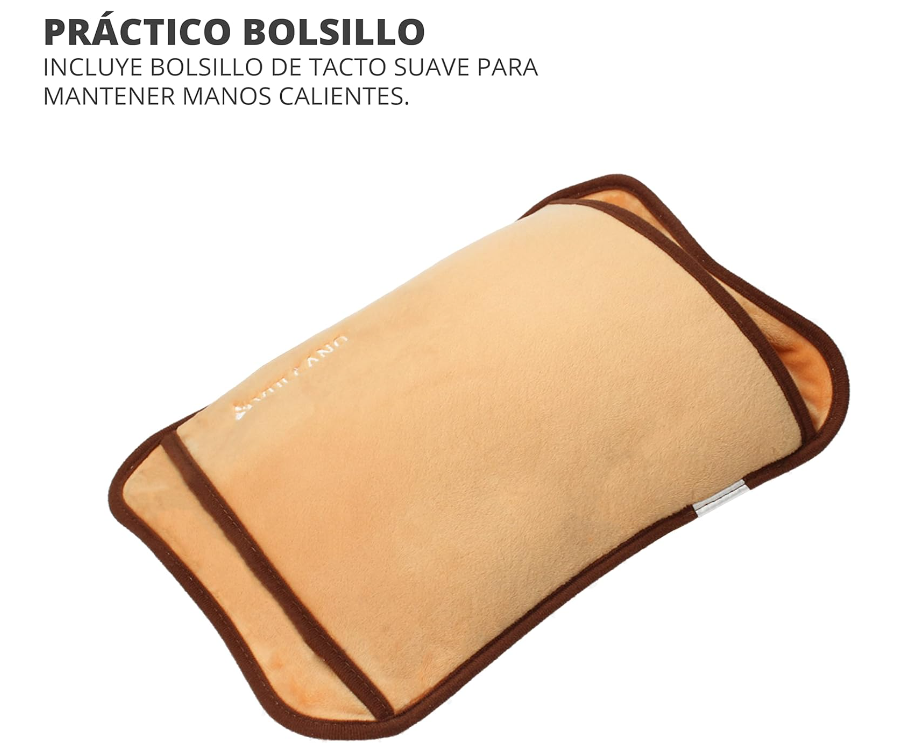 În față este un buzunar pentru încălzirea mâinilor și picioarelor. Proiectat ergonomic pentru o mai bună aplicare pe orice parte a corpului. Imbracat cu o tesatura din microfibra care este foarte moale la atingere si usor de curatat.
