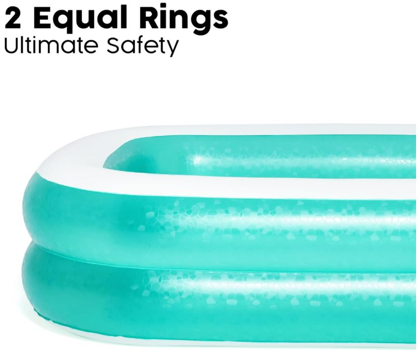 Ușor de asamblat. Piscina familială se umflă rapid și este foarte ușor de asamblat. Material robust. Fabricată din vinil robust, piscina promite o durată lungă de viață.