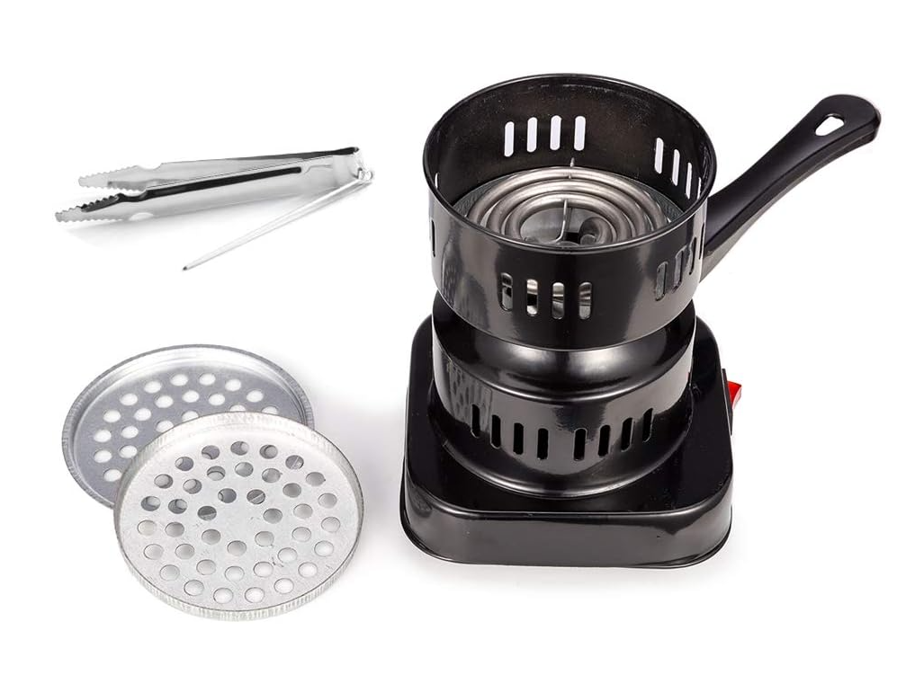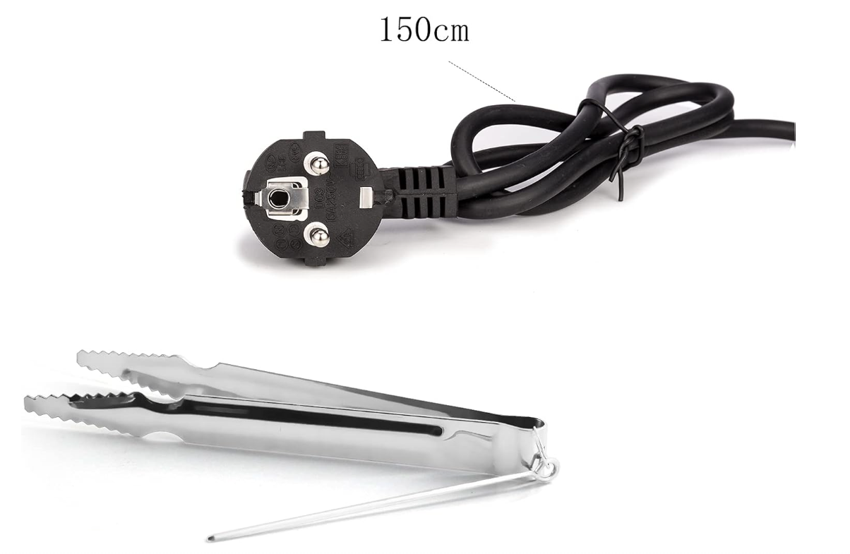 Ușor de utilizat – cu un cablu de alimentare extra-lung de 150 cm, bricheta electrică de cărbune shisha poate fi așezat liber pe terasa balconului mesei. Perfect pentru fumatul confortabil de narghilea. Echipat cu clește de cărbune.