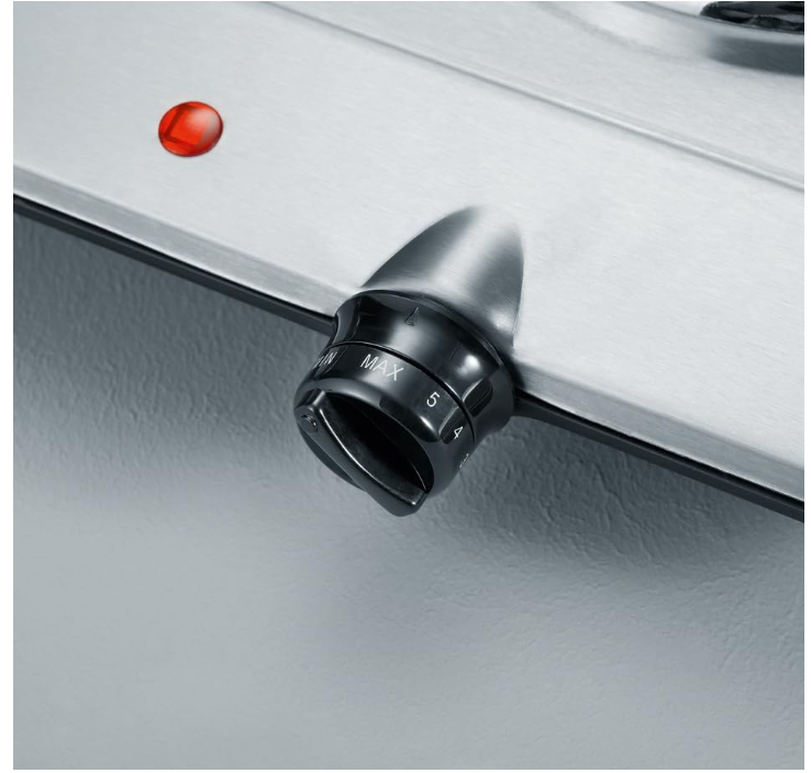 UȘOR DE UTILIZAT - Plita mică este ușor de utilizat: pur și simplu conectați-o la rețea și reglați temperatura continuu folosind cele două termostate independente cu indicator luminos