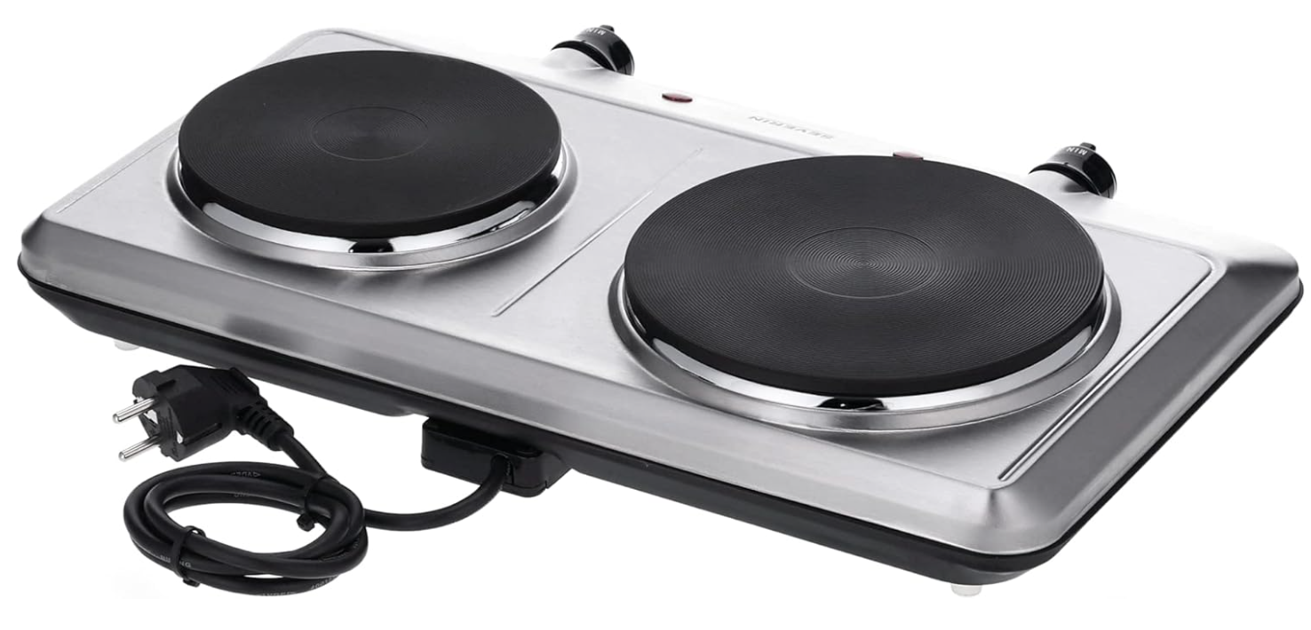 PUTERNIC - Aparatul de gătit are 2 plite, una cu diametrul de 15 cm cu o putere de 1000 W și cealaltă cu un diametru de 18 cm cu o putere de 1500 W.