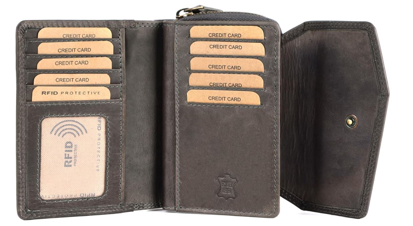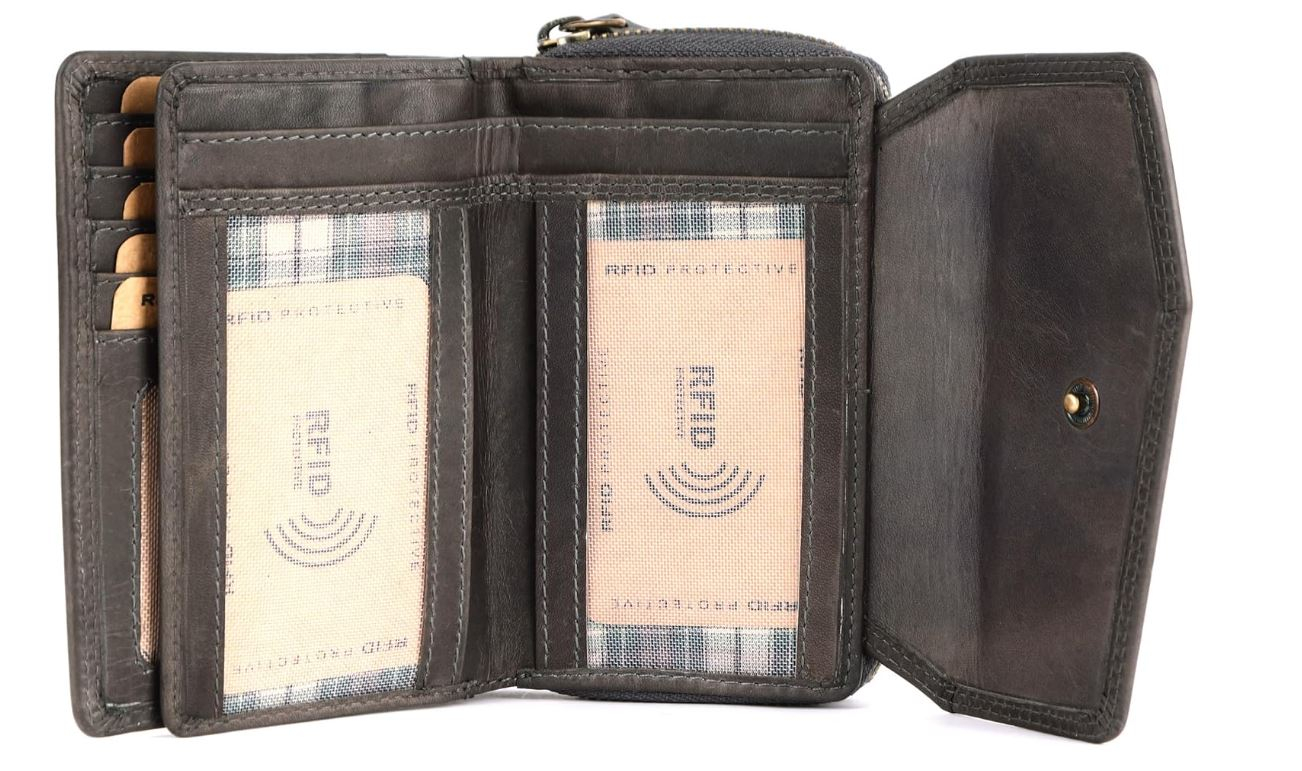 Portofel de dama - Piele moale foarte confortabila, un material grozav intr-un aspect vintage usor. Un portofel real de înaltă calitate - datorită pielii naturale durabile, vei simți diferența. Cu protecție RFID, portofelul este în siguranță împotriva furtului de date.