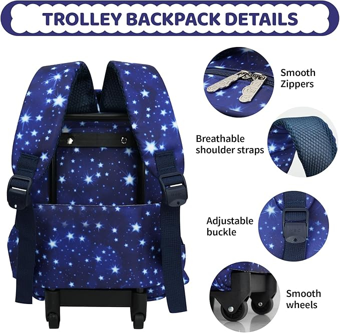 Ușor și rezistent la apă: acest rucsac pentru copii pentru băieți cu roți din poliester rezistent la stropire este ușor și impermeabil pentru a proteja lucrurile copilului dumneavoastră de ploaie și face din această valiză pentru copii un tovarăș de călătorie de încredere în orice vreme.