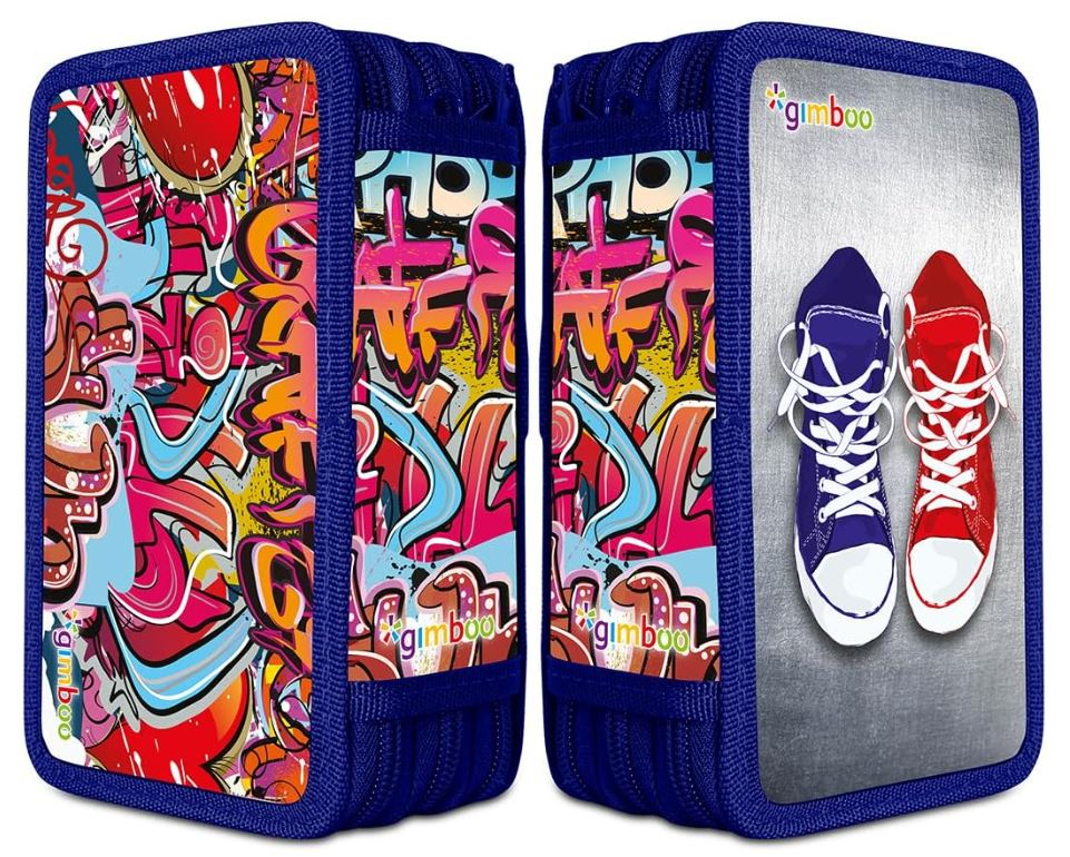 Gimboo 6768BTS71PL-01 Penar pentru școală cu 3 compartimente / Penar cu fermoar GRAFFITI