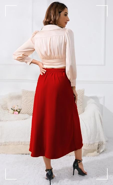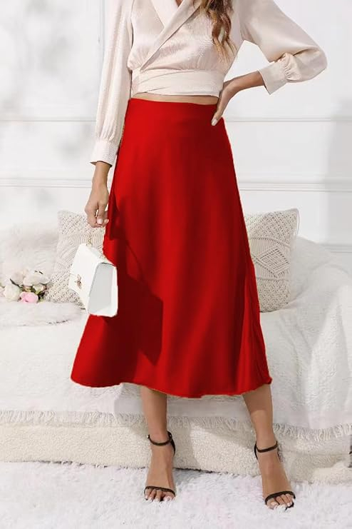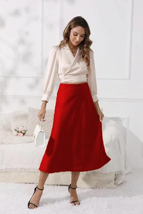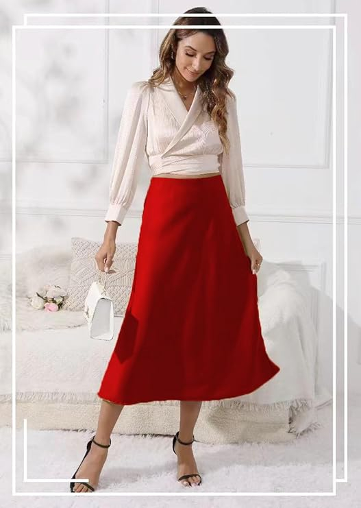 Fusta de damă: Fusta este confecționată din țesătură satinată de înaltă calitate, netedă și strălucitoare, oferindu-vă o senzație de lux și superbă. Senzația excelentă de drapaj și respirabilitatea fac din această fustă elegantă perfectă pentru primăvară și vară.