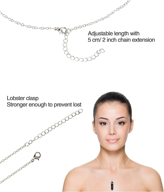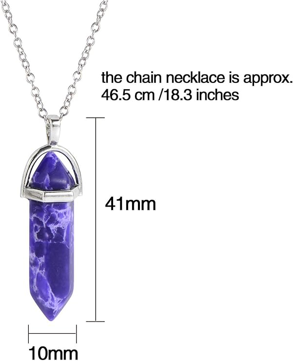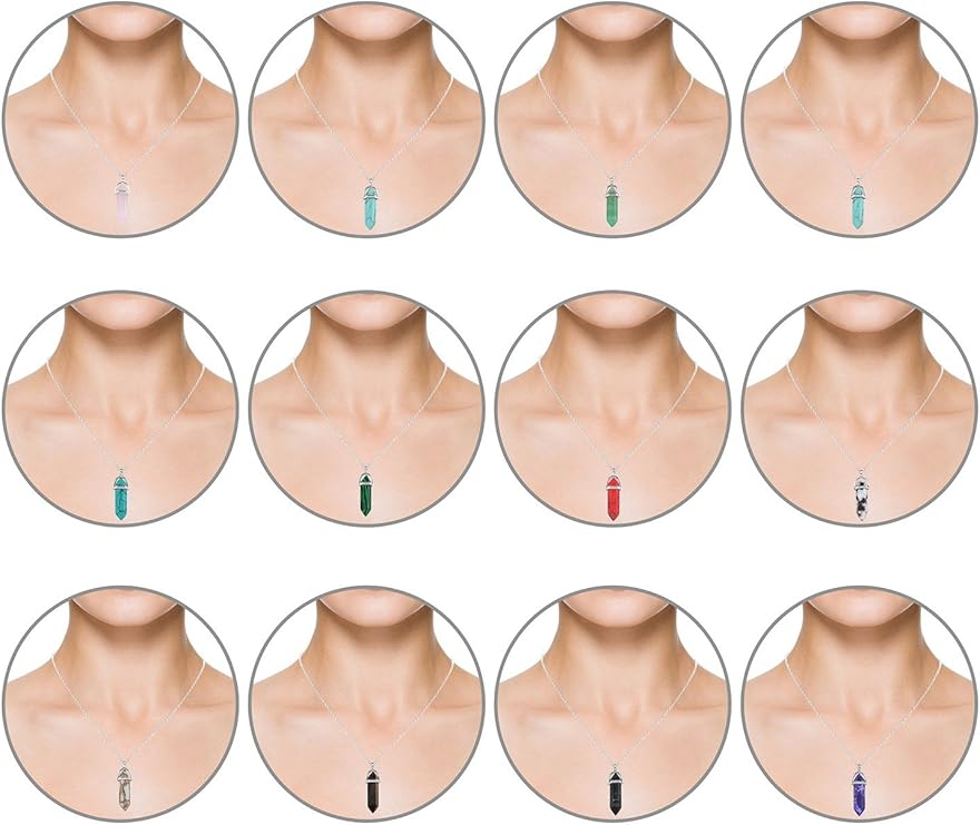 Cantitate: 12 bucăți; Pachetul conține 12 coliere cu pandantiv hexagonal ascuțit. Colierele cu pietre vindecătoare, în 12 stiluri diferite, se vor potrivi cu majoritatea ținutelor tale de zi cu zi.