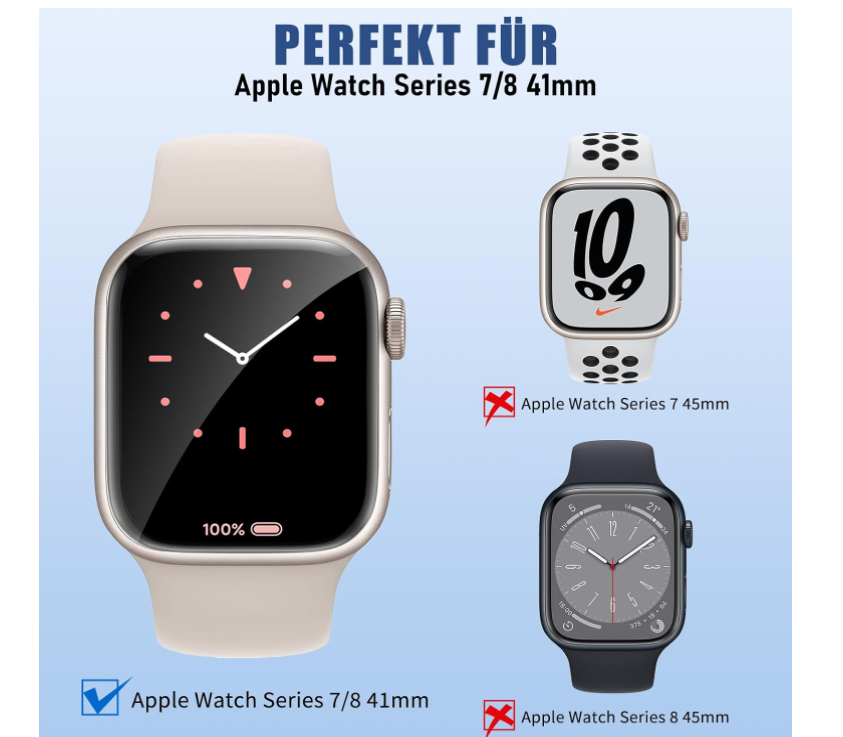Compatibilitate: Aceasta folie pentru telefonul mobil a fost special conceput pentru Apple Watch Series 7/8 41 mm și nu este compatibil cu alte modele.
