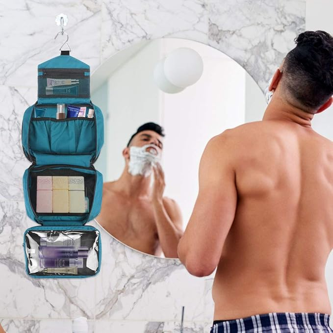 Portabila si practica: geanta cosmetica cu dimensiuni compacte pentru a economisi spatiul pentru bagaje pentru un transport usor, si carlige integrate pentru agatat in baie, suport pentru prosoape sau oriunde doriti sa vedeti si sa accesati cu usurinta articolele dumneavoastra organizate.