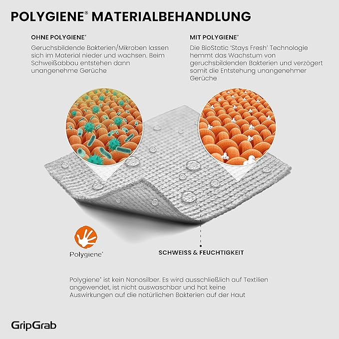 Miros scăzut - Tratamentul anti-miros Polygiene din acest strat de bază inhibă creșterea bacteriilor care provoacă mirosuri și astfel poate întârzia formarea mirosurilor în maiou în timpul sportului