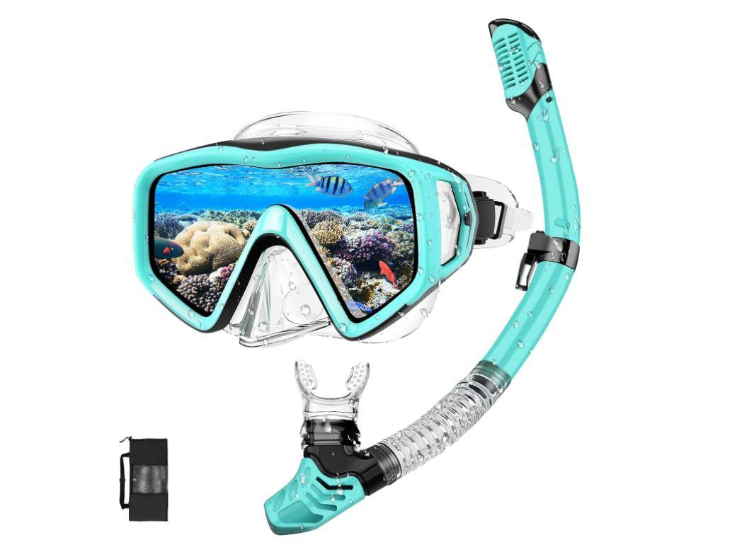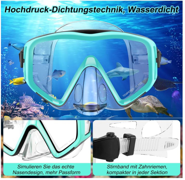 Ochelari de scufundare cu design panoramic de 180°: Ochelarii de scufundare ai setului de snorkel sunt fabricați din sticlă securizata, care este rezistentă la frecare și ceață și oferă un câmp vizual clar. Lentila este echipată cu un strat anti-aburire, care nu este un material plastic. Vă rugăm să nu zgâriați lentila pentru a nu afecta efectul anti-aburire. Marginile ochelarilor de scufundare sunt realizate din silicon moale care se potriveste aproape de fata ta si este impermeabila.