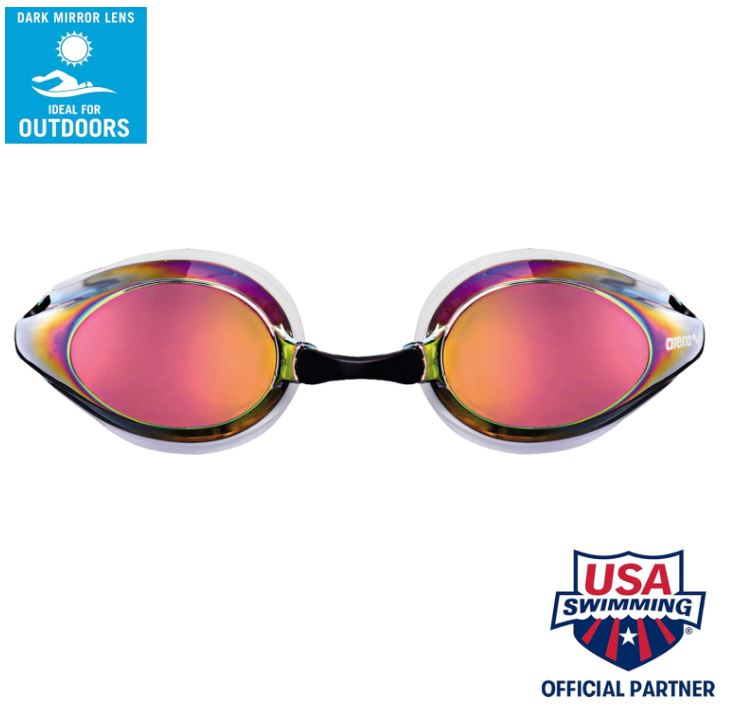 Ochelari de protecție pentru competiție: ochelarii de înot Arena Tracks Mirror cu lentile anti-aburire în oglindă sunt confortabili și practici și dispun de garnituri moi, ideale pentru înotătorii de competiție.