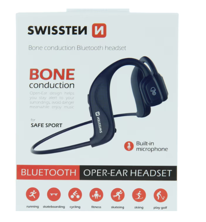 Castile SWISSTEN BONE CONDUCTION au o tehnologie inovativa de transfer al sunetului prin osul de la conducta sonora direct la urechea interna. Aceasta tehnologie asigura, pe de o parte, o ascultare confortabila si, pe de alta parte, posiblitatea de perceptie a sunetului ambiental. Acest lucru este foarte sigur in timpul deplasarii in trafic.