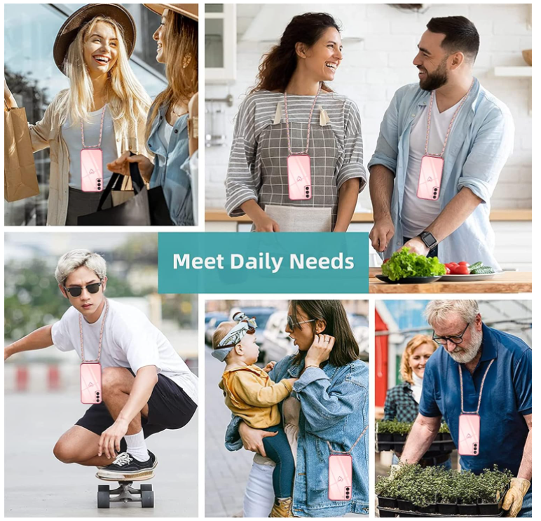 Snur pentru Samsung S21 5G: Lungimea șnurului poate fi ajustată, astfel încât să puteți decide cum să purtați telefonul. Este fabricat din material frânghie de nailon, lungimea frânghiei este de aprox. 150 cm și capătul frânghiei de înaltă calitate din metal. Așa că atârnă perfect pe partea ta pentru corp transversal, lateral sau față