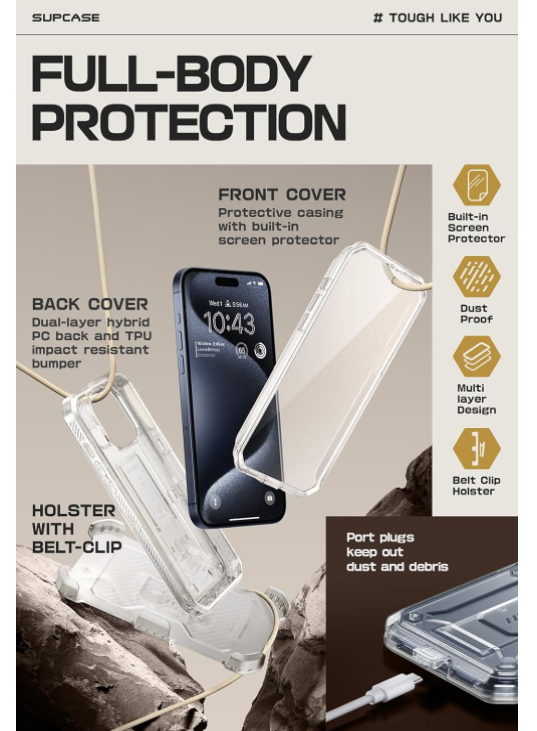 Protector de ecran încorporat: carcasa completă cu protecție de ecran încorporată ajută la prevenirea zgârieturilor fără a compromite sensibilitatea.