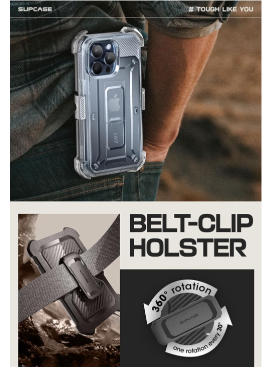 Clip rotativ pentru centură: Atașați-l pe curele sau curele de umăr, rotiți-vă la 360°, oferiți o utilizare ușor de utilizat și sigură.