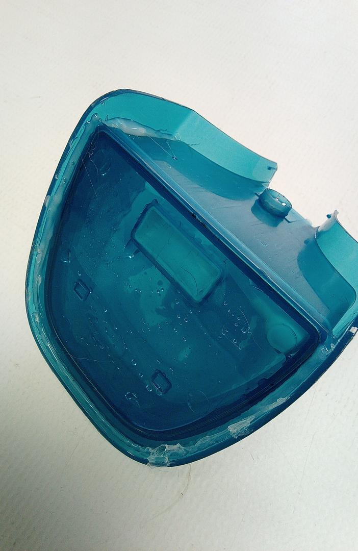 Rezervorul de apa a fost crapat si lipit la loc, iar calcatorul prezinta zgarieturi fine pe suprafetele lucioase.
