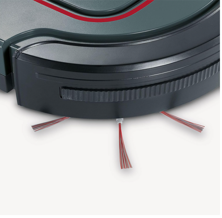 Acest aspirator de sine stătător cu înălțimea de 7 cm are 2 perii rotunde XL și 3 moduri de curățare (navigație giroscopică, curățare în spirală și de-a lungul pereților)