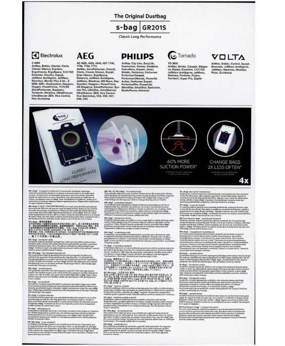 Compatibil cu aspiratoarele care folosesc saci s-bag de la Electrolux, AEG, Philips, Volta, Tornado