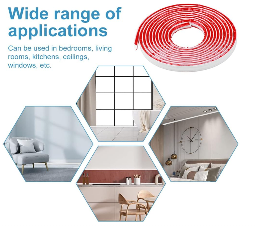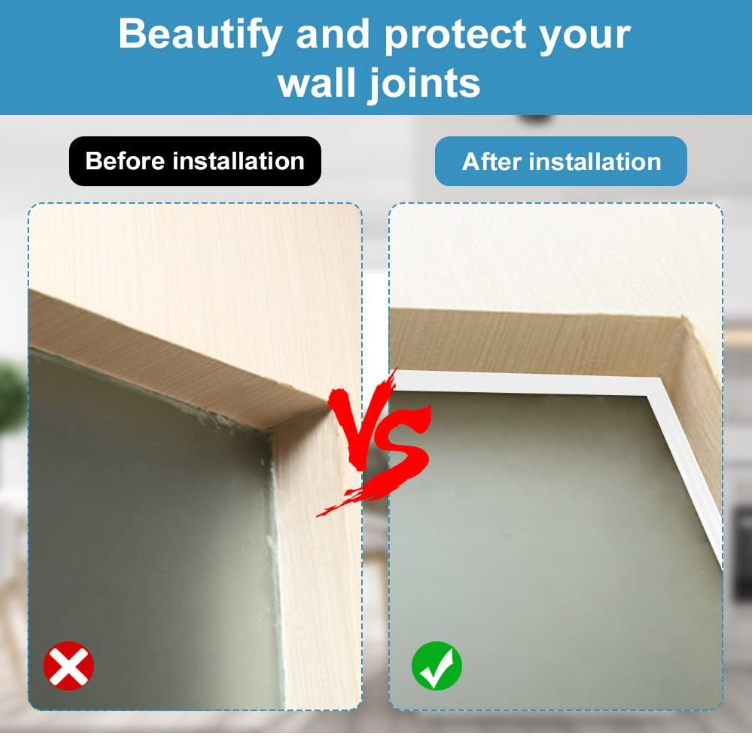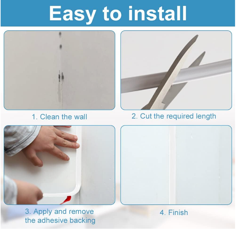 Protejați-vă marginile peretelui: Aceste benzi de perete autoadezive sunt utilizate pe scară largă. Poate fi folosit pentru a înfrumuseța și proteja îmbinările pereților. Poate fi folosit în dormitoare, sufragerie, bucătării, tavane, ferestre, etc. Decorați colțurile mobilierului, acoperiți golurile, praf și impermeabil.