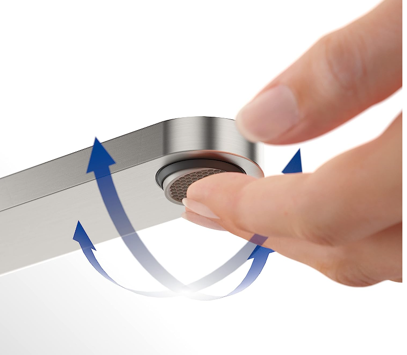 Regulator de jet pivotant: regulatorul de jet mobil permite reglarea individuală a direcției jetului și astfel crește în mod flexibil raza de funcționare.