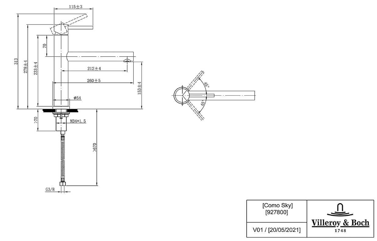Rotire la 120°: intervalul limitat de rotire previne umezirea accidentală a blatului și protejează robinetul de lovituri de perete atunci când este montat pe perete.