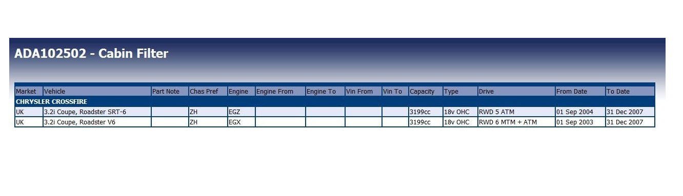 - CHRYSLER Crossfire Coupe ( 07.2003 - 12.2008 , 218 - 335 CP)