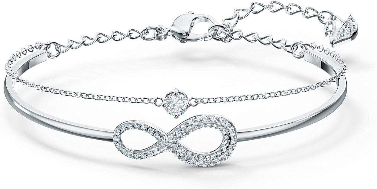 Fabricată în placare cu rodiu, această brățară are cristale Swarovski strălucitoare care se rotesc pentru a forma un design infinit.