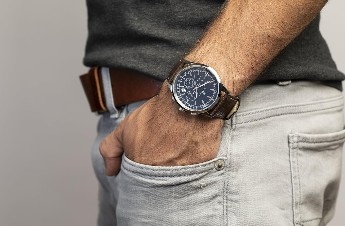 Calitate premium: Prin utilizarea materialelor de înaltă calitate, sticlă: cristal Hardlex, material carcasă: oțel inoxidabil, material brățară: piele - Rezistent la apă: 5 bari