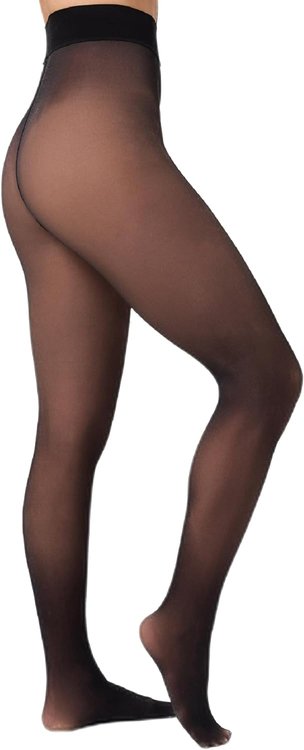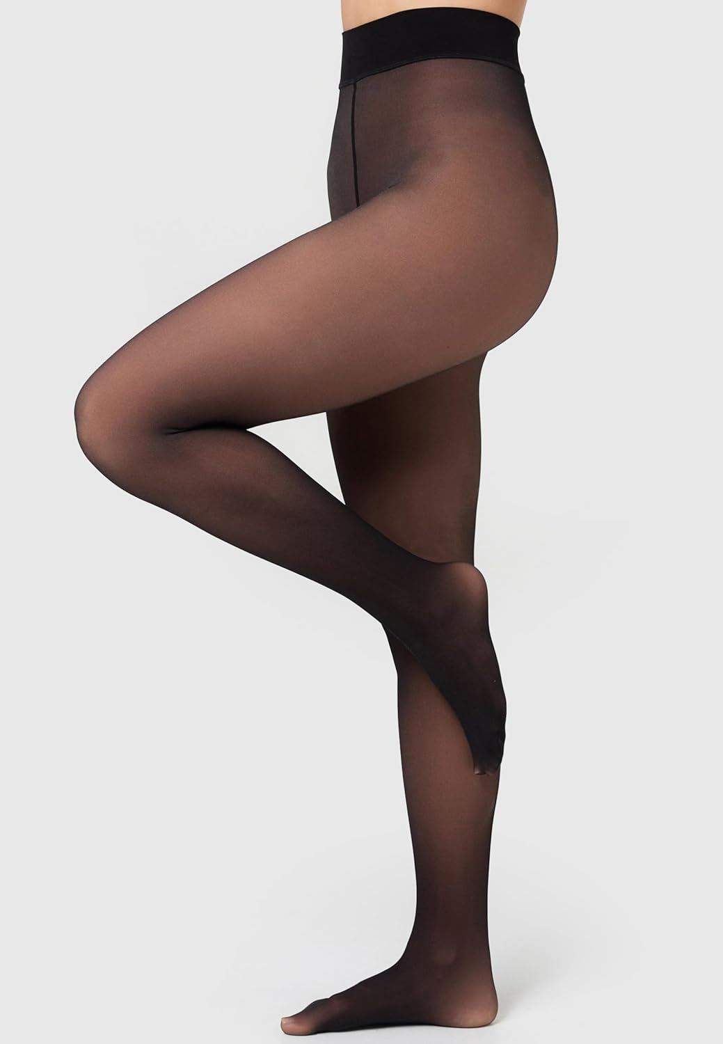 Colanți groși de 50 den cu aspect transparent de 20 den, aspect transparent datorită tehnicii speciale de tricotat. Interiorul de culoarea pielii strălucește prin colanți și îi face să arate transparent la exterior