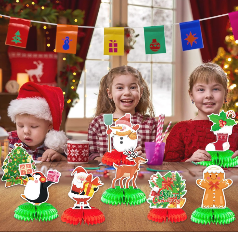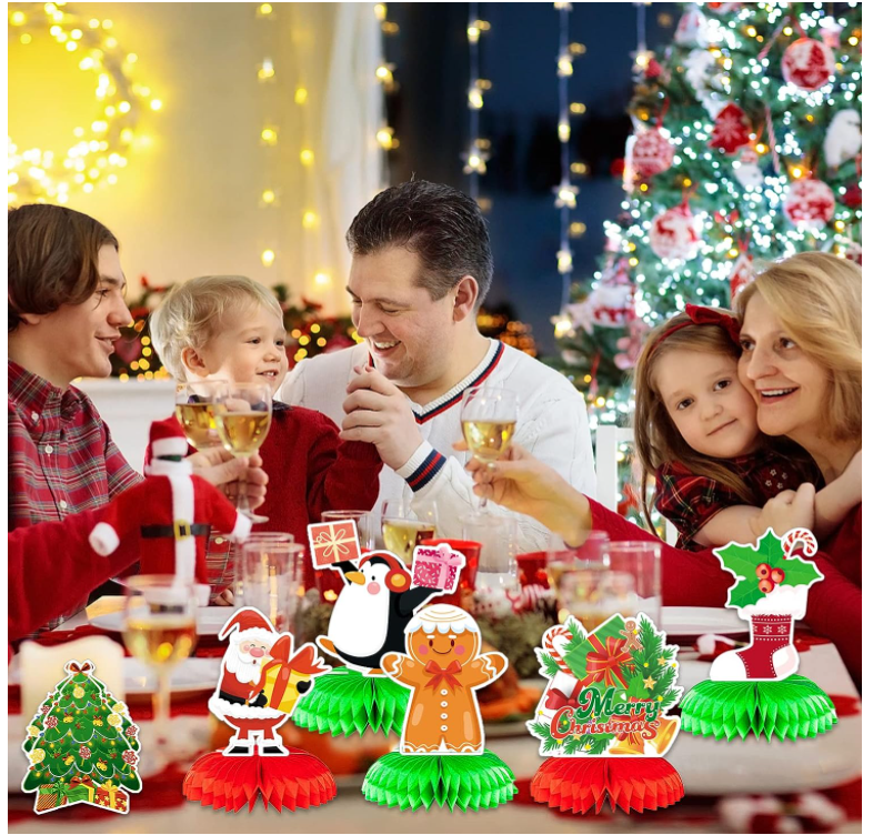 Scenarii versatile: decorațiunile pentru masă de Crăciun pot fi folosite ca decorațiuni distractive pentru petreceri de Crăciun, decorațiuni de Crăciun la birou și acasă, evenimente de Anul Nou, etc. Decorarea mesei de Crăciun cu fagure poate fi folosită ca decor pentru șemineu de Crăciun sau ca petrecere. banner cu cleme pentru a adăuga fler de Crăciun petrecerii. Ele pot fi, de asemenea, folosite ca suveniruri de petrecere sau ca elemente de recuzită pentru a face fotografii semnificative.