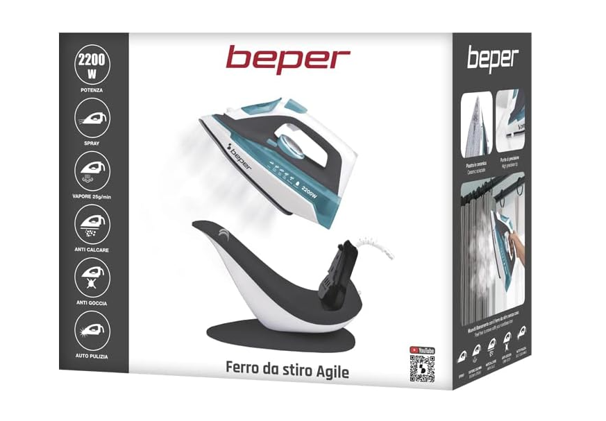 DETALII CARE FAC DIFERENTA: Fierul de calcat Beper dispune de sisteme avansate de autocuratare, anticalcar si anti-picurare care garanteaza durata de viata indelungata a fierului de calcat mentinandu-i in acelasi timp performanta. Baza de susținere este convenabilă pentru plasarea fierului de călcat fierbinte în timpul utilizării fără a arde masa de călcat