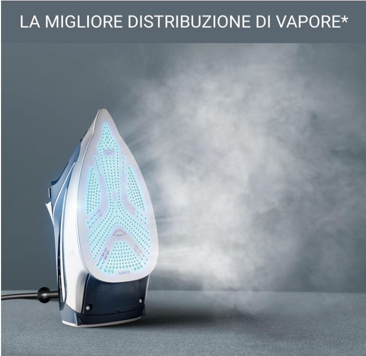 Talpă laser Microsteam 400: distribuție adecvată a aburului prin cele 400 de orificii active din talpă; rezistență sporită la zgârieturi, performanță excepțională și durabilă