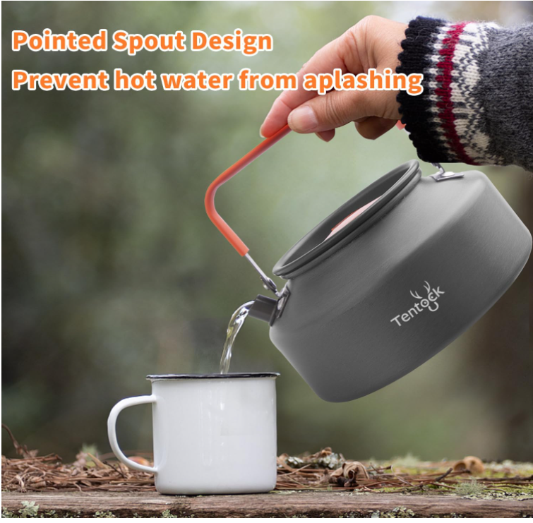 Durabil și extrem de eficient: fierbătorul de camping Tentock este fabricat din aluminiu anodizat dur pentru o rezistență incomparabil la temperaturi ridicate, rezistență la coroziune, rezistență la rugină și rezistență la zgârieturi. Textura spirală din partea inferioară a ceainicului de camping asigură o încălzire uniformă și crește performanța de gătit a gazului din ceainic. Puteți bea apă aburindă, cafea și ceai în doar câteva minute.