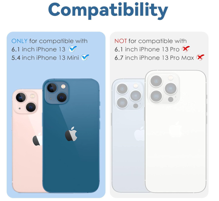 Proiectat special numai pentru iPhone 13 (6,1 inchi) și iPhone 13 Mini (5,4 inchi), nu este compatibil cu iPhone 13 Pro (6,1 inchi) și iPhone 13 Pro Max (6,7 inchi).