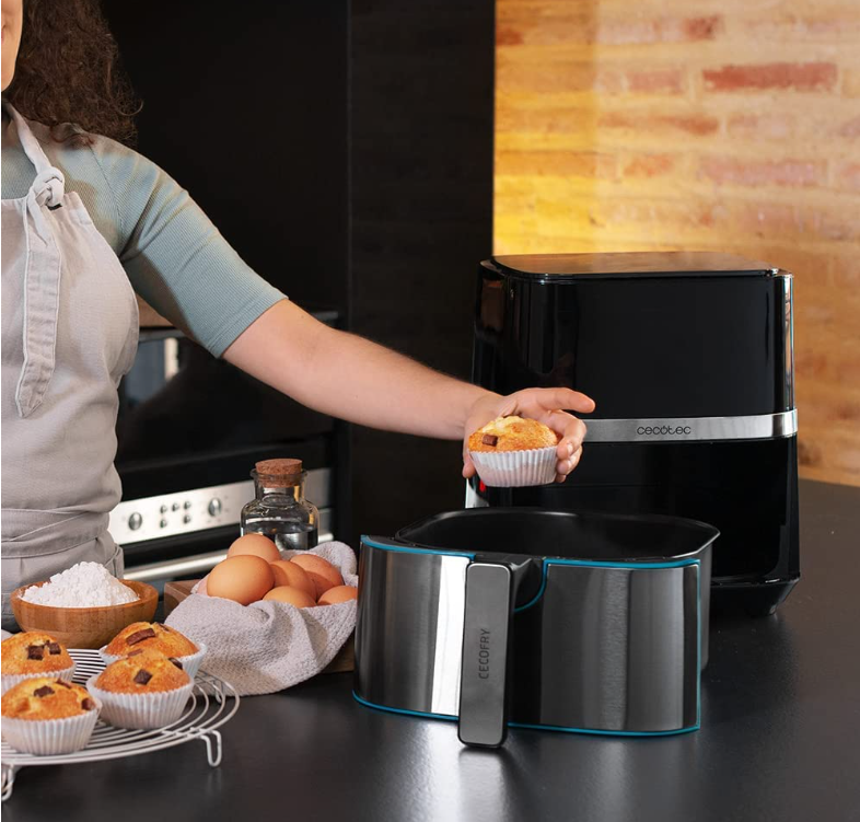 Friteuză dietetică pentru gătit cu doar o lingură de ulei pentru a pregăti mâncăruri mai sănătoase. Bol cu suprafata de gatit de 5,5 litri pentru gatirea unor cantitati mari de alimente.