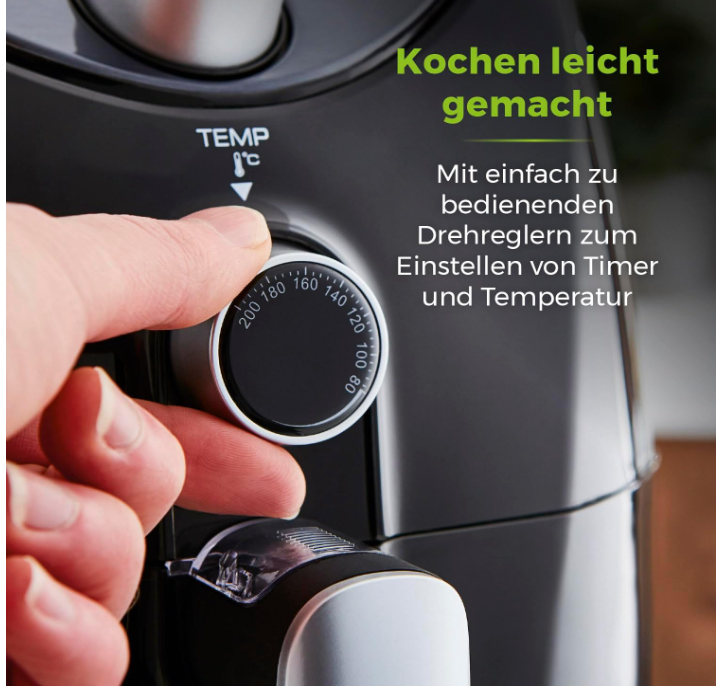 Gătit ușor: cu butoanele ușor de utilizat ale acestei friteuze cu aer, puteți seta temporizatorul de 60 de minute și temperatura (80-200°C) pentru a obține rezultate perfect gătite de fiecare dată.