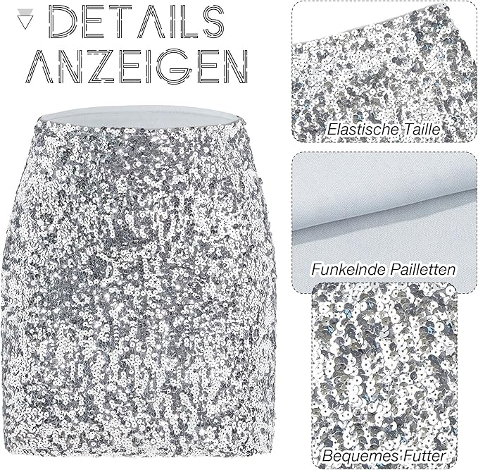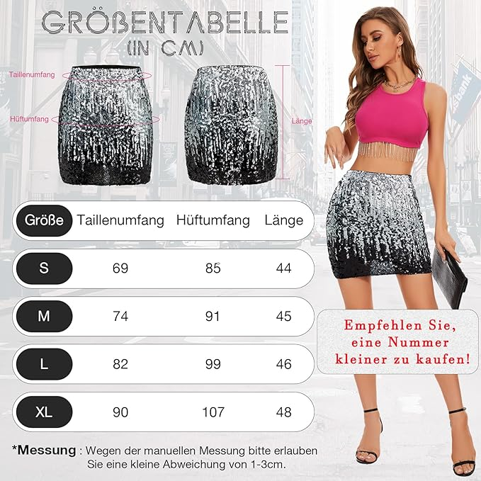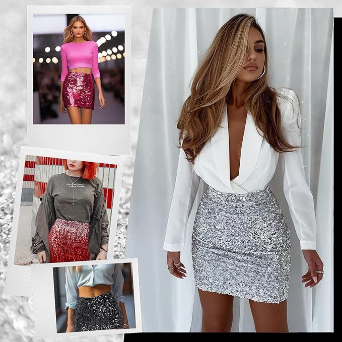 Această fustă este decorată cu paiete și are un design elastic cu talie înaltă care se potrivește mai bine corpului tău, îți scoate în evidență curbele și te face să strălucești la petrecere.