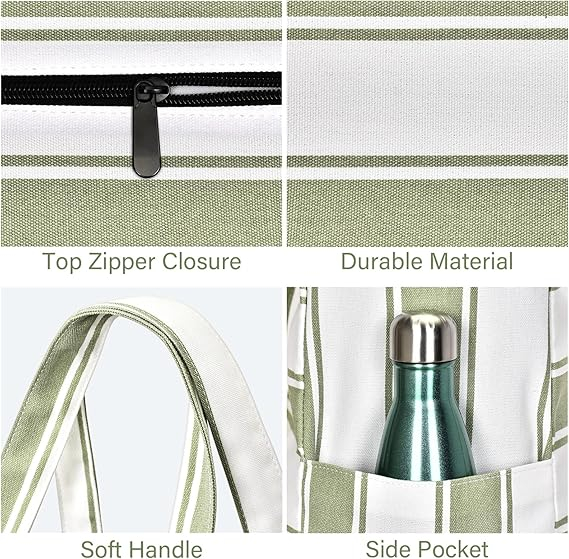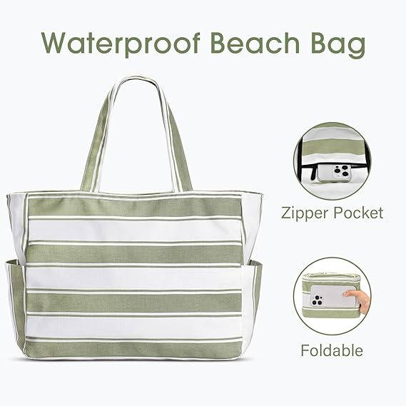 Include un compartiment principal mare cu fermoar, 2 buzunare exterioare, 1 buzunar interior. Gențile mari de plajă pot găzdui cinci prosoape, costum de baie, pantofi, gustări, căni, jucării, pălării și ochelari de soare etc. Buzunar interior cu fermoar pentru telefon mobil și portofel. Organizează-ți lucrurile în mod clar.
