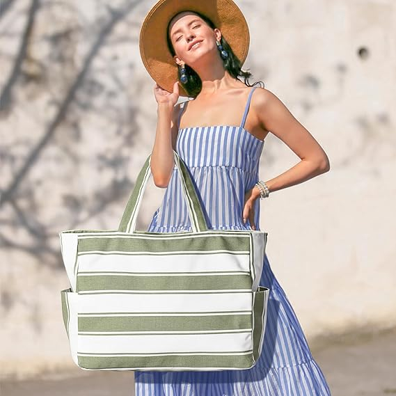 Geantă de damă la modă: cu modelul clasic cu dungi și combinația de culori, această geantă poate fi purtată cu toate ținutele din garderobă, asigurând o varietate de stiluri diferite.