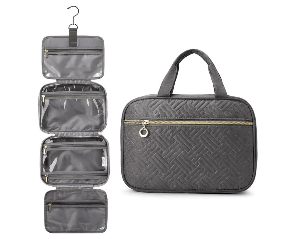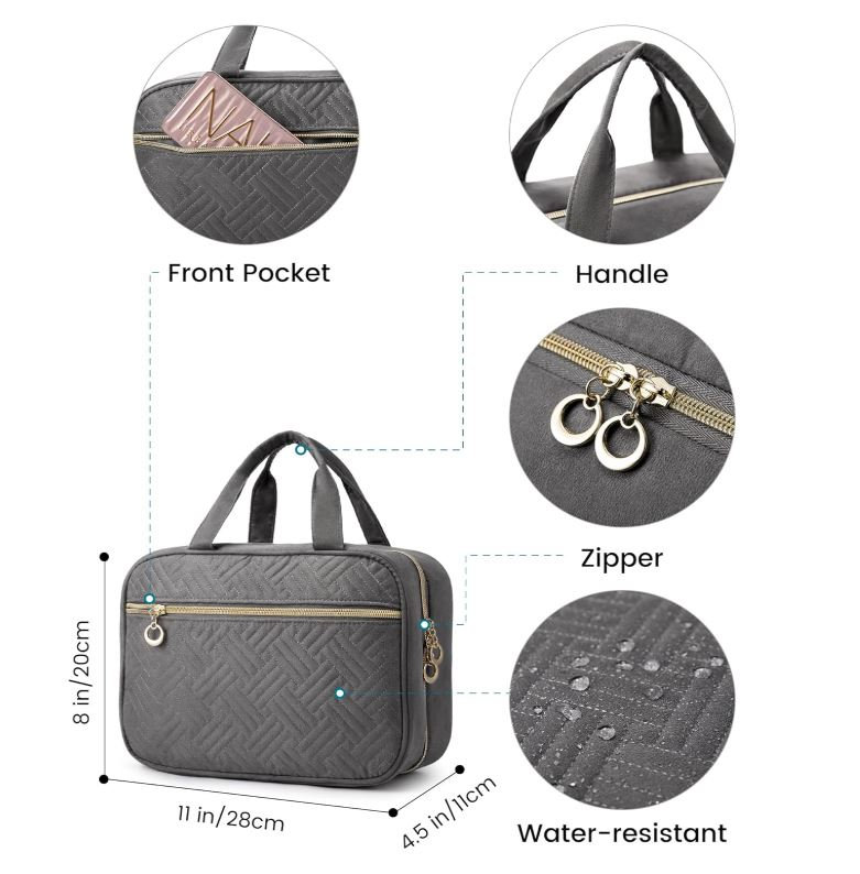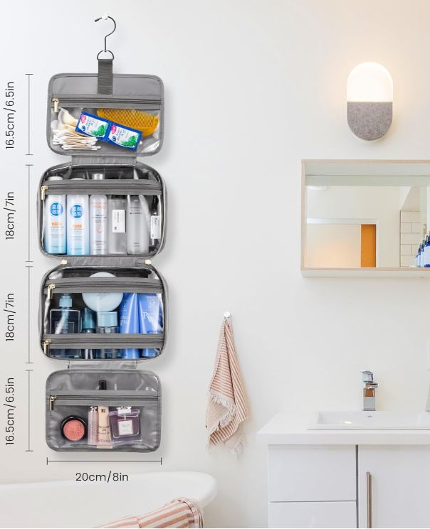 Capacitate mare: 28 x 20 x 11 cm (11 x 8 x 4,5 inci), această geantă de toaletă pliabilă are 4 compartimente separate diferite pentru a vă organiza mai bine lucrurile și există, de asemenea, un compartiment cu fermoar pe suprafață.