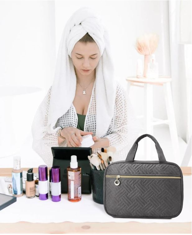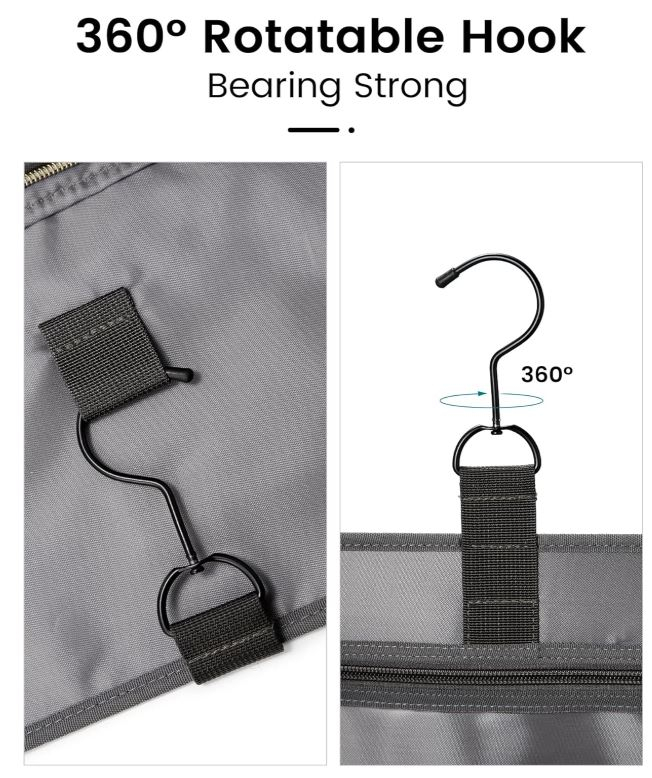 Cârlig rotativ la 360°: această geantă de toaletă pentru femei are un cârlig metalic, rotație la 360 de grade, poate fi agățată în toaleta băii.