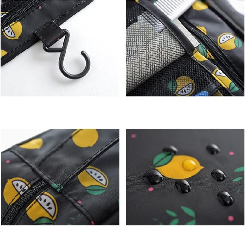 Material: Geanta de machiaj este fabricata din fibra de poliester de inalta calitate, impermeabila, uscata rapid si usor de curatat. Cârligul de agățat rezistent poate fi agățat de ușa băii, tija de duș sau suport pentru prosoape pentru confortul dumneavoastră în baie.